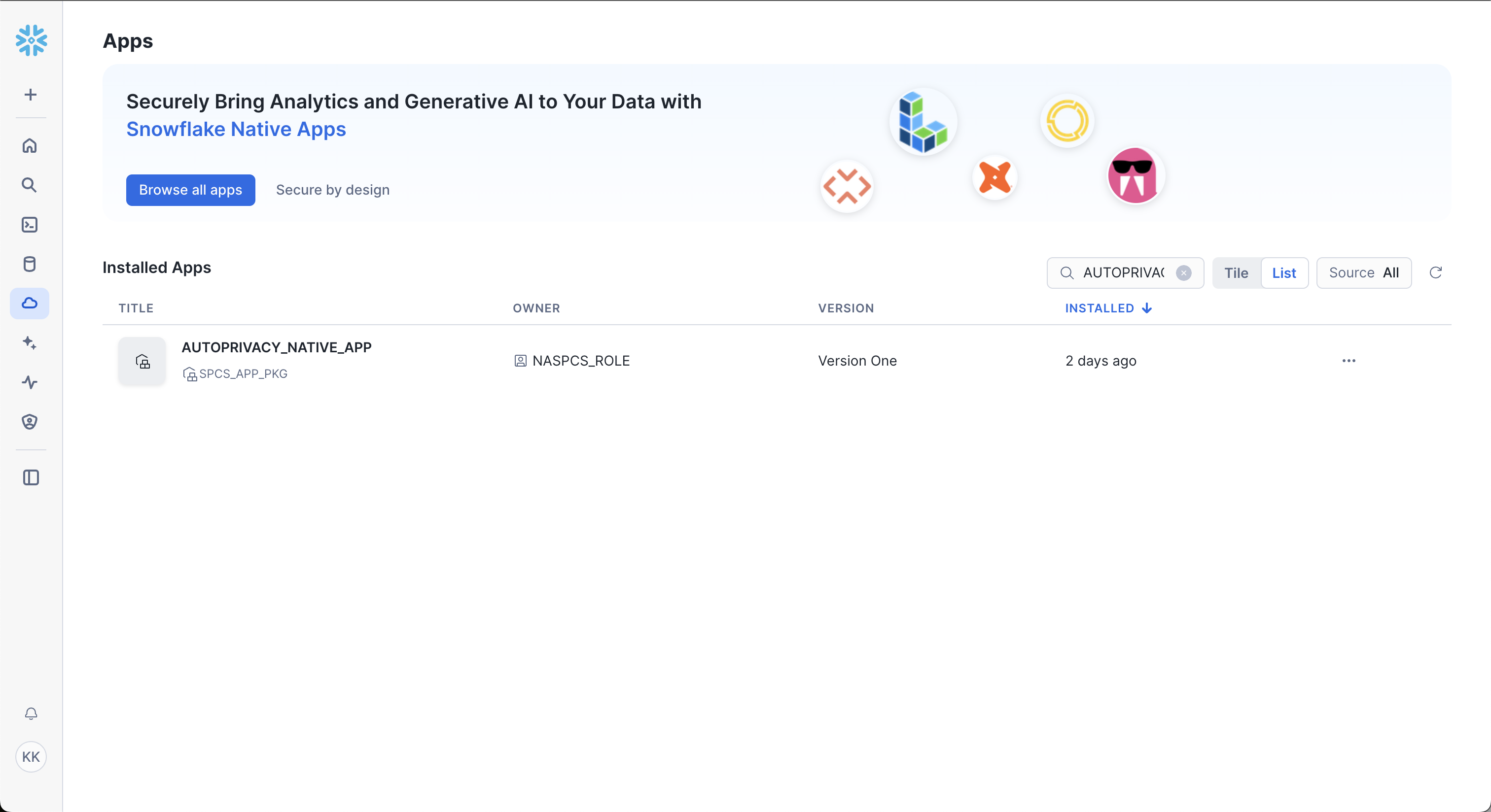 Installed Appsの中から AUTOPRIVACY_NATIVE_APP をクリックすることでStreamlitを起動します。