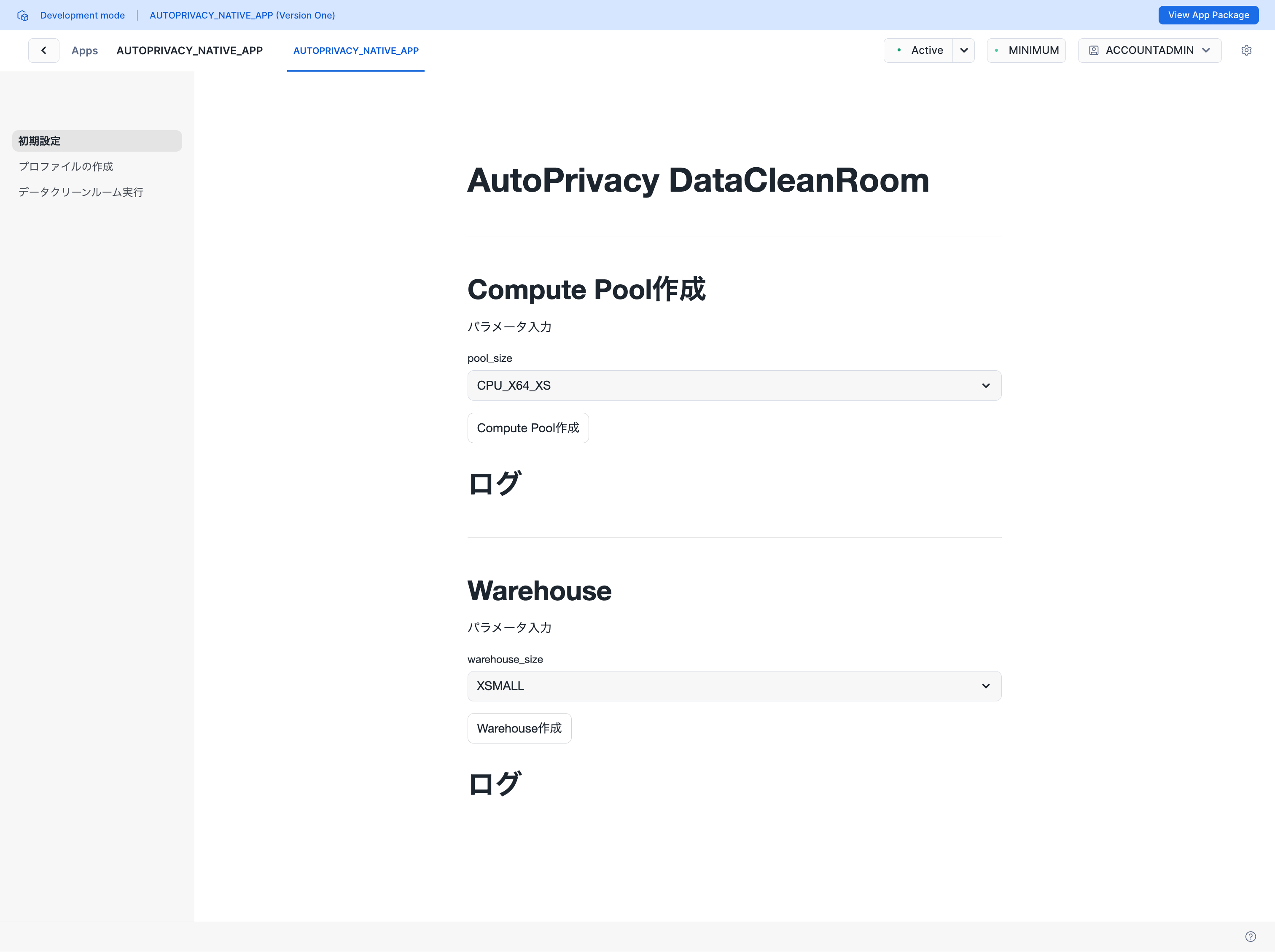 本セクションでは、Snowflake Native AppのGUI操作について説明します。